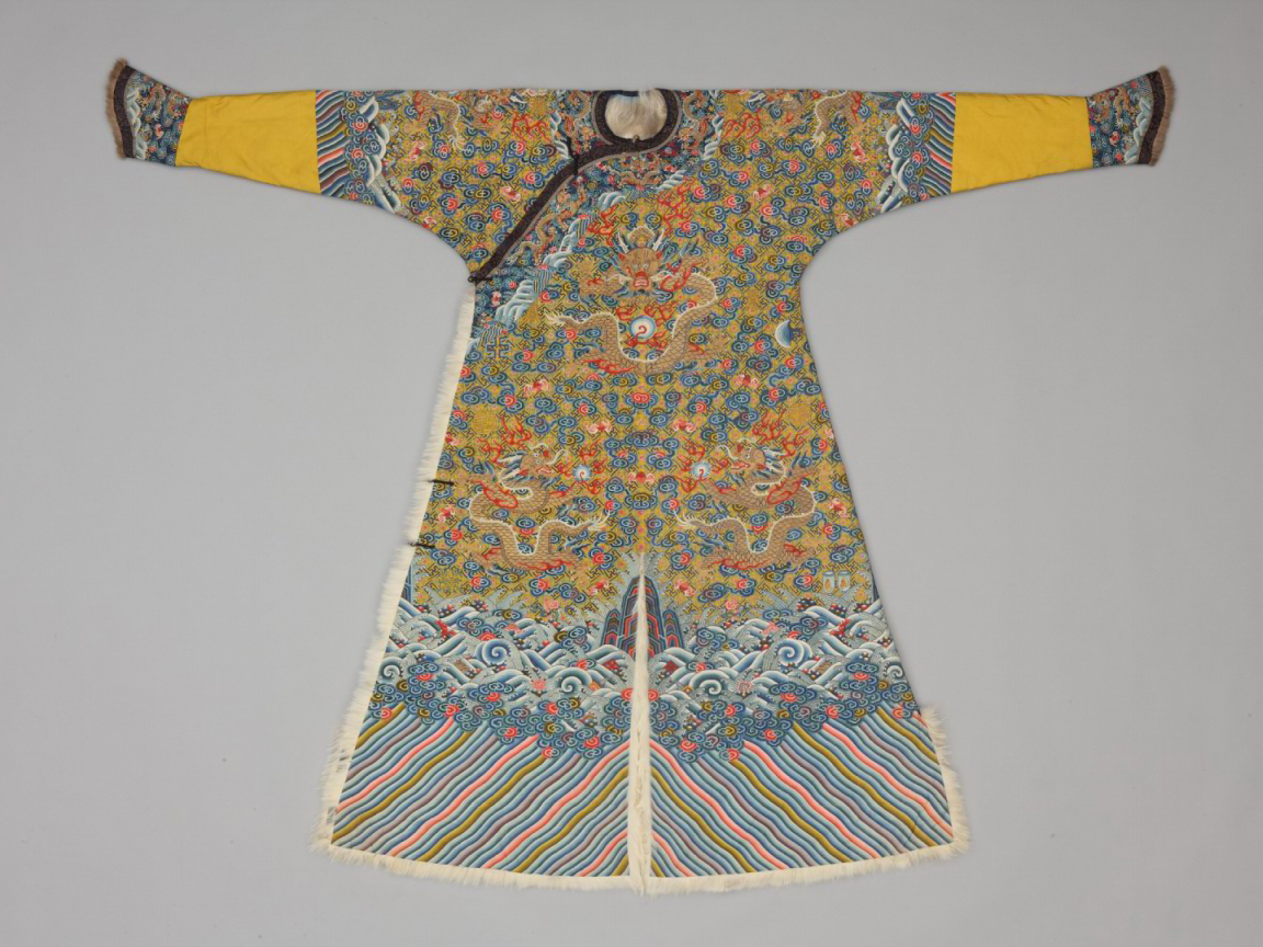 过年是最喜庆的节日,自当盛装。按照清朝的制度,皇帝在太和殿的朝贺大典,需穿朝服;在乾清宫行家人礼,则穿吉服;家宴、宗亲宴时,亦穿吉服。吉服是级别仅次于朝服的礼服,俗称“龙袍”,穿着时必须与相应的冠、带、朝珠搭配。