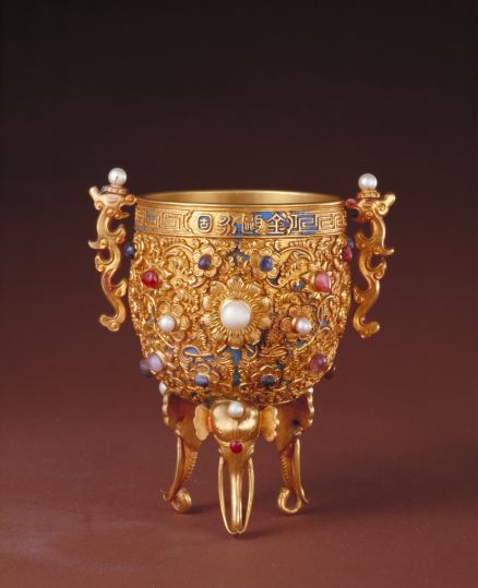 元旦子正(零点),在养心殿东暖阁明窗处放金瓯永固杯,内注屠苏酒;旁设玉烛台、红漆雕云龙盘,盘上置一个八吉祥炉和二个古铜香盘。